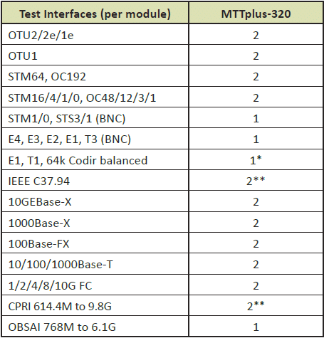 • Multi-Technologie: xDSL, Faseroptik, Teleprotektion, Datacom, DSn / PDH, SONET / SDH, OTN, Ethernet, Fibre Channel, CPRI / OBSAI