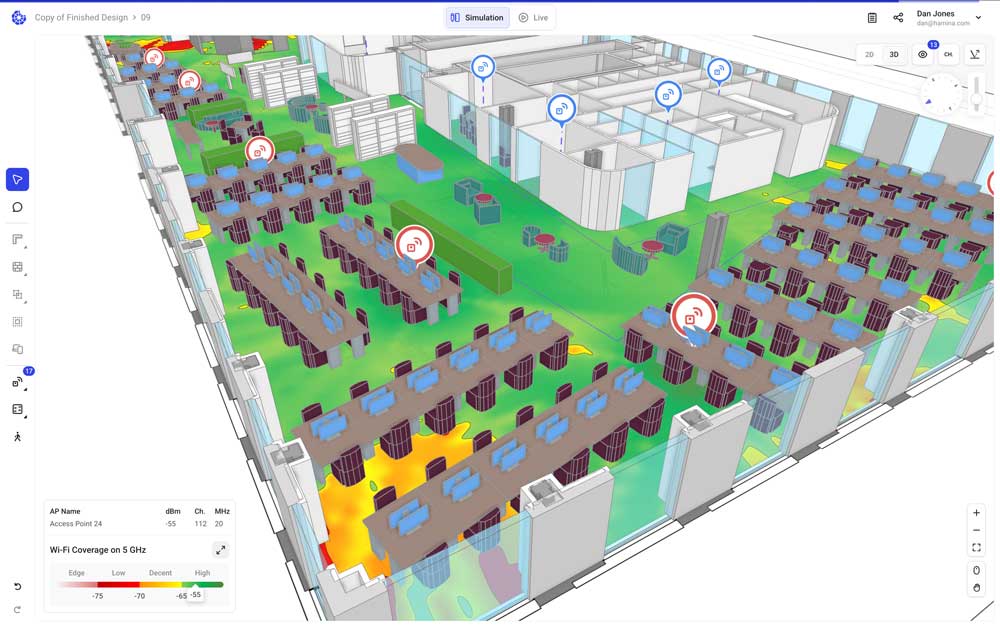 Leistungsstarke Wi-Fi-Planung und KI-Design für die zuverlässigsten und leistungsstärksten drahtlosen Netzwerke – jetzt auch mit 6 GHz.